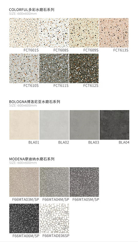 5、設計理念:2019春季,佛諾倫莎隆重推出900×900mm、600×1200mm兩大黃金規格系列新品,通過多色多面多質感的設計手法,采用5V工藝和特質的釉料配方,傾力打造集拋光面、柔光面、半拋面、自然啞光面四種不同的表面質感產品,花色以大理石紋為主,同時涵蓋水泥質感、水磨石等,顏色以不同深度的灰色為主,同時搭配經典的米黃色、大地色等,整體風格現代簡約,適應各種空間的不同風格應用,以滿足FRLS現有[工程 · 出口 · 家裝 · 設計師]渠道的需求。